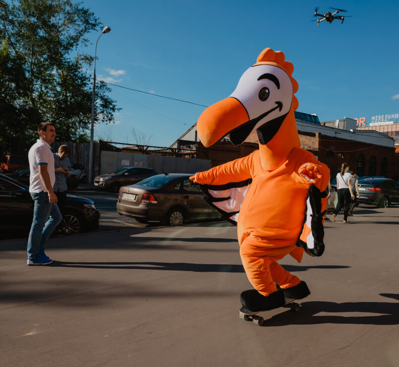 И, конечно же, рассказ о бренде будет неполным без птички. Это наш маскот — постоянный спутник открытий, промокампаний и детских праздников.
