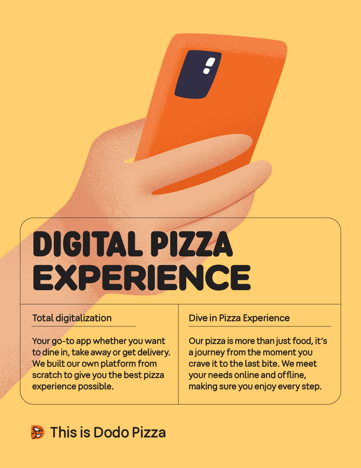 Додо Пицца знаменита своим дизайном. И это не случайность! С самого первого дня мы непрерывно ищем свой визуальный язык и уникальный стиль — просто потому что любим хороший дизайн, нам это интересно.