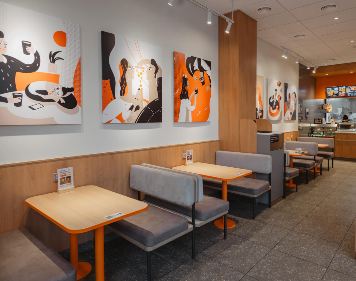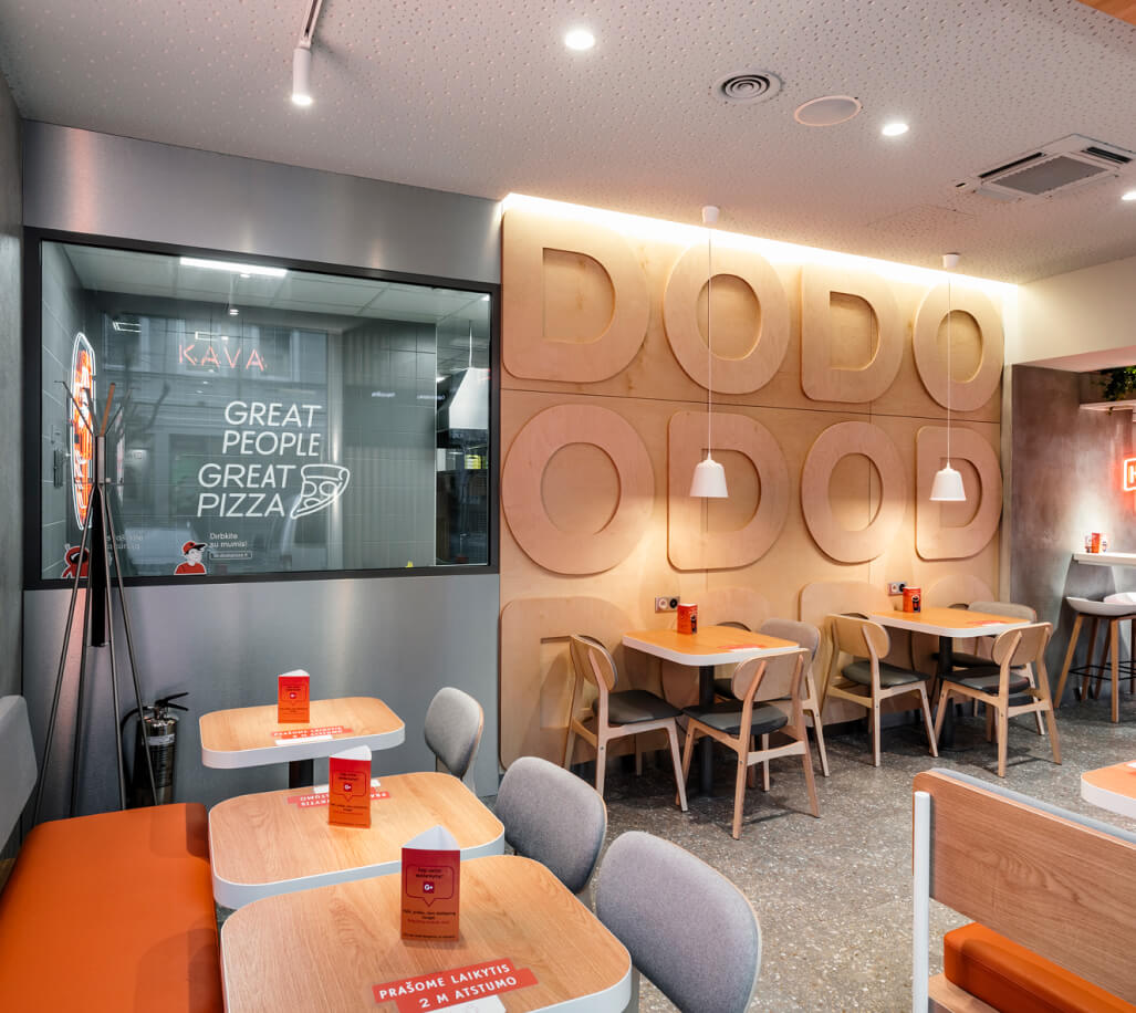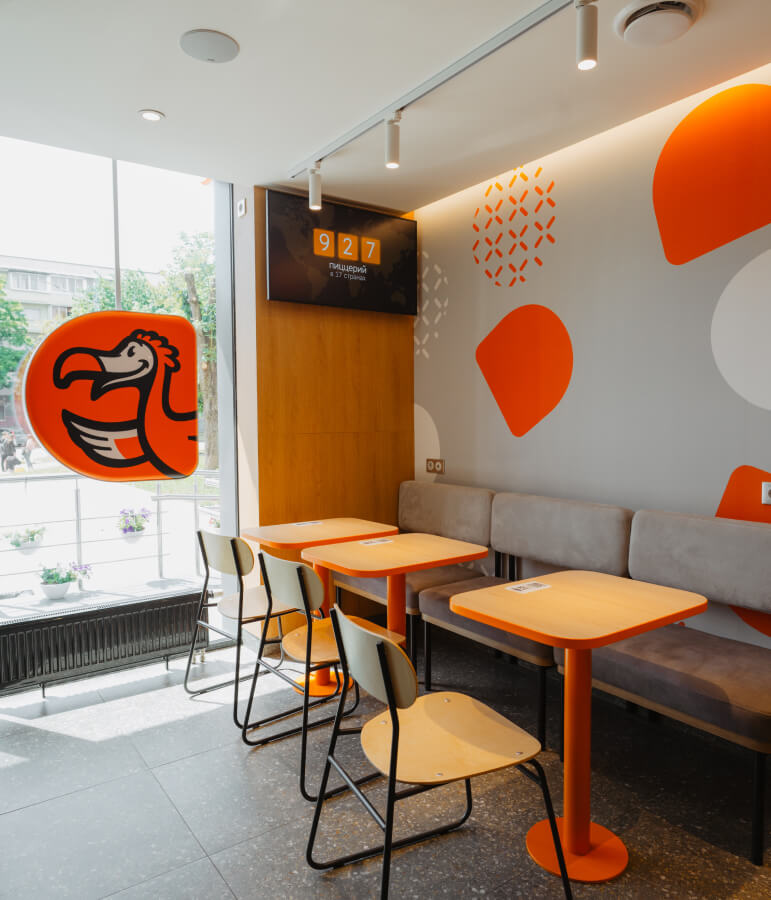 Мы открываем пиццерии везде — в исторических районах, в мрачных девятиэтажках, в модных торговых центрах и в отдалённых малых городах. Разные локации требуют разных архитекурных решений, новые рынки требуют новых форматов, но в результате всегда получается та самая Додо Пицца.