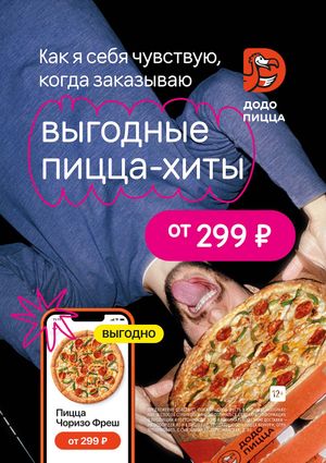Каждый день наши клиенты решают множество задач: перезвонить, помочь, отвезти, придумать, обсудить, сделать. Параллельно с этим нужно успеть поесть, накормить, угостить, порадовать и позаботиться. Мы не знаем, о чём в точности они заботятся каждый день. Но знаем, как сделать любой день немного лучше! Когда человеку нужна пицца или лёгкий перекус, спокойный уголок или место для встречи — у него есть Додо Пицца.